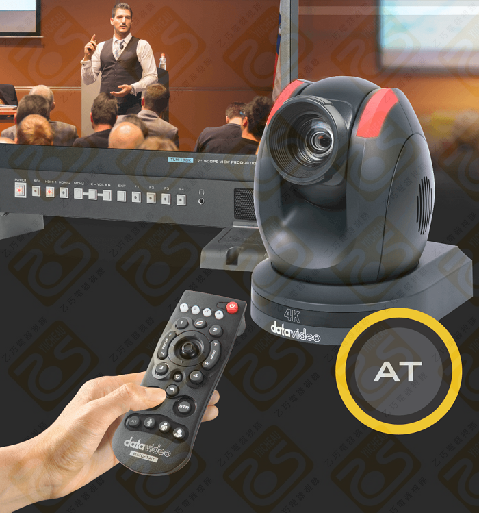 因應各種場合拍攝需求,Datavideo 自動追蹤攝影機全系列產品內含遙控器,可以快速選擇全身 , 半身及近身取景,方便更改拍攝場景及取景需求。