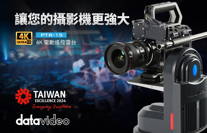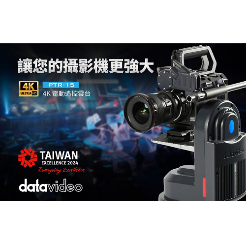 Datavideo 榮獲多項大獎的 PTR-15是一款創新的 4K 電動遙控雲台,專為讓攝影機具備精準遙控能力而設計,它結合了自動化雲台控制以及先進的訊號連接與整合功能,徹底革新專業影像製作流程。Datavideo PTR-15 曾榮獲 2024 台灣精品獎,充分展現 Datavideo 對創新、靈活應用性和廣電級效能的堅持。