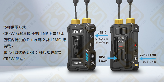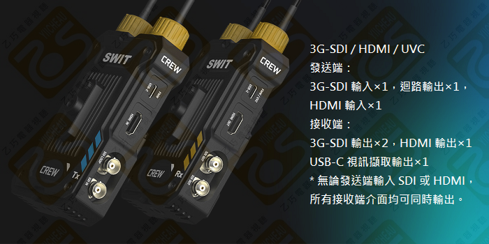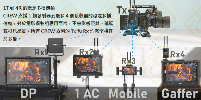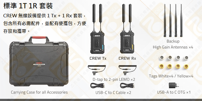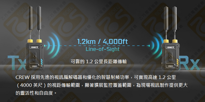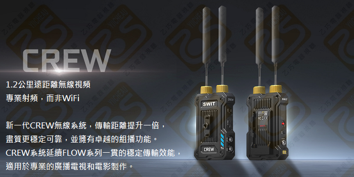 SWIT CREW 1.2公里/4000英尺 專業無線圖傳 1TX+1RX NP-F電池版 32毫秒超低延遲