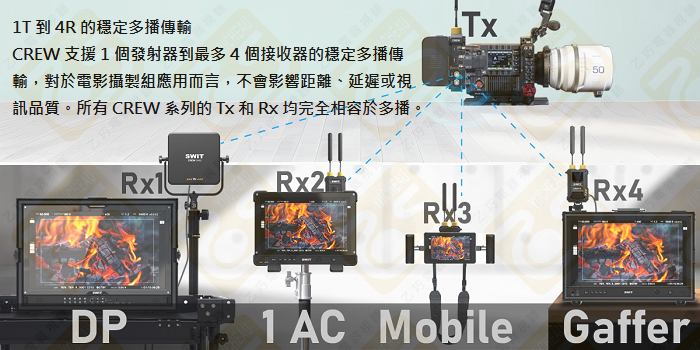 1 個發射器 (Tx) 對應 最多 4 個接收器 (Rx) |