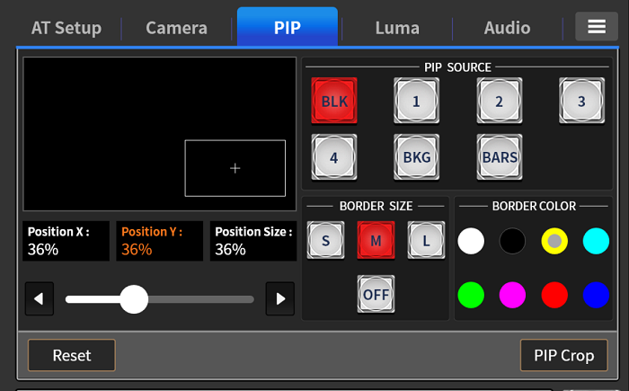 HS-1650T 支援靈活的 Picture-in-Picture(PIP)顯示,可自由指定任一影像來源作為子畫面。